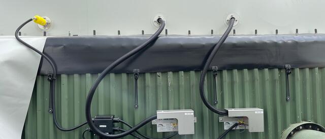 As an alternative to the GasHmeter, we also use compact laser distance sensors that have been optimised for biogas; these provide contactless and precise measurement of the distance between the gas tank membrane and the outer membrane. The laser is bolted onto a flange, preferably at the pole and possibly at additional points, and it is fitted with a protective cover against rain. A lens heater prevents condensation on the lenses from affecting the measurement. The key benefit of this measuring technology is that the inner membrane can move without contact while still enabling precise measurement. In this case, we also recommend measuring from multiple points and calculating an average.